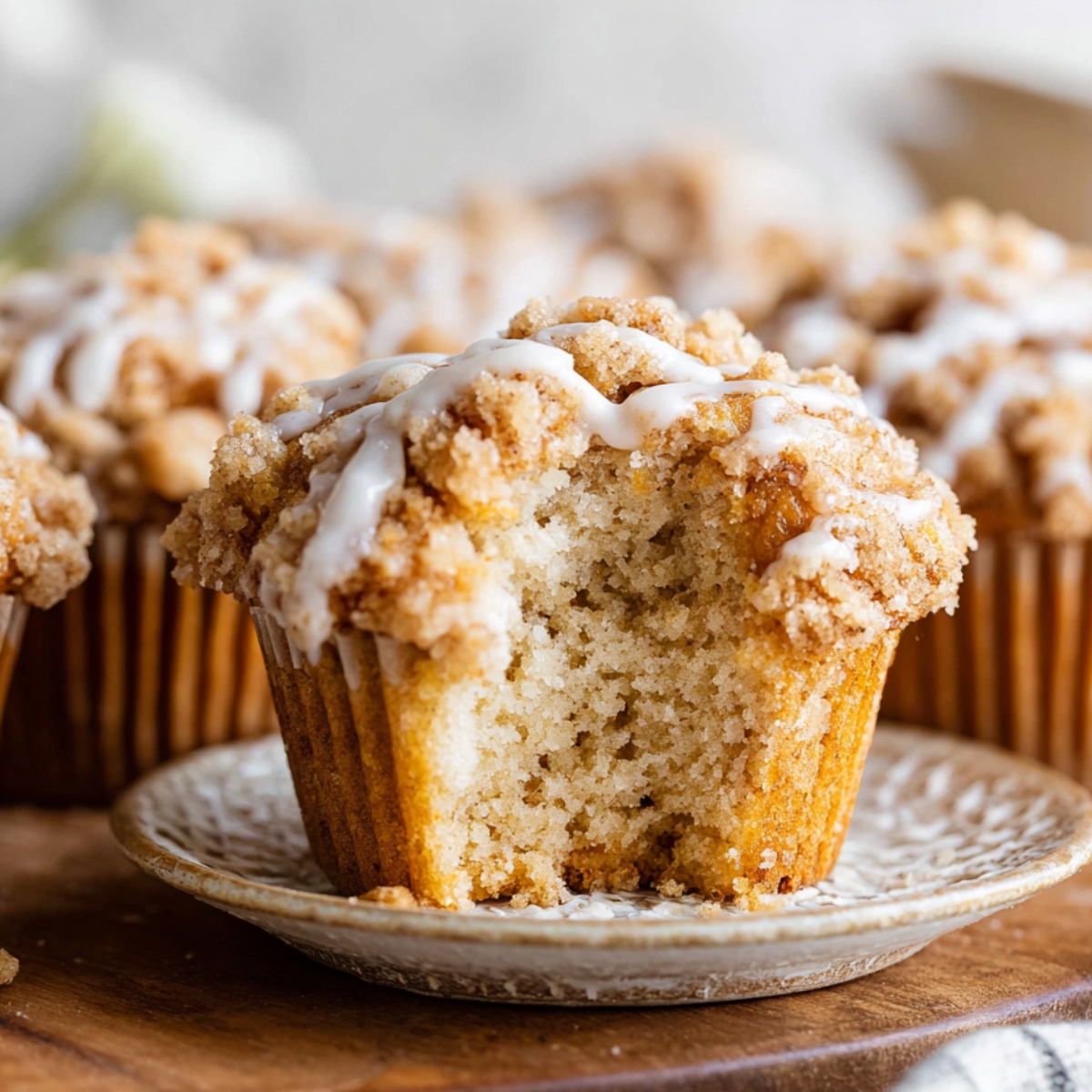 Optional Glaze: For the glaze, whisk together powdered sugar and milk until smooth and pourable. Start with 2 tablespoons of milk and add more if needed. Drizzle evenly over the warm muffins and allow the glaze to set for about 10 minutes before serving.