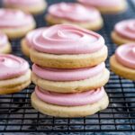 - Once cookies are completely cool, spread a generous layer of pink frosting on top.